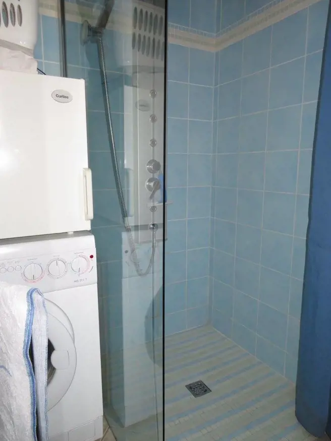 - une salle d'eau avec douche italienne, lavabo, WC, lave linge séchant